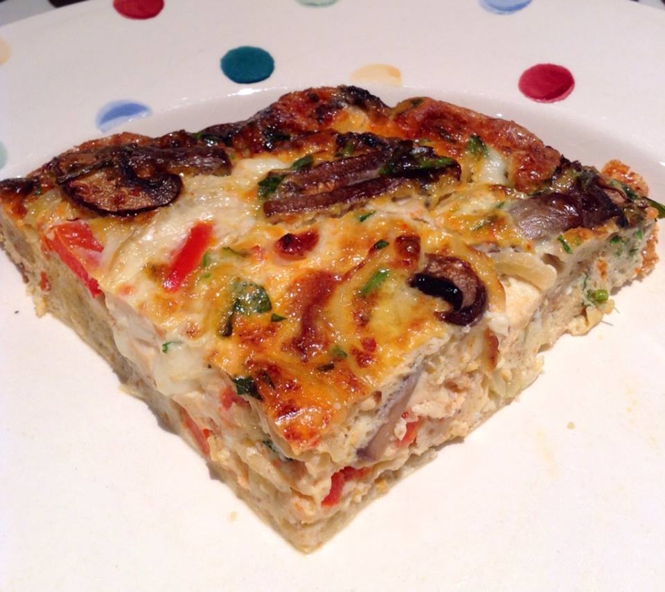 Who says tomatoes are a vital to a good pizza? Red pepper paste, particularly the one from Olive Branch, is the new tomato sauce. There are no tomatoes on this pizza, just lots of delicious red peppers (red pepper paste, roasted red peppers from a jar and fresh red peppers) as well as mushrooms, green and black olives, onions and mozzarella. Many of these ingredients are leftovers from the Cheese and Mushroom Frittata recipe so it’s an ideal dish to make in the same week.