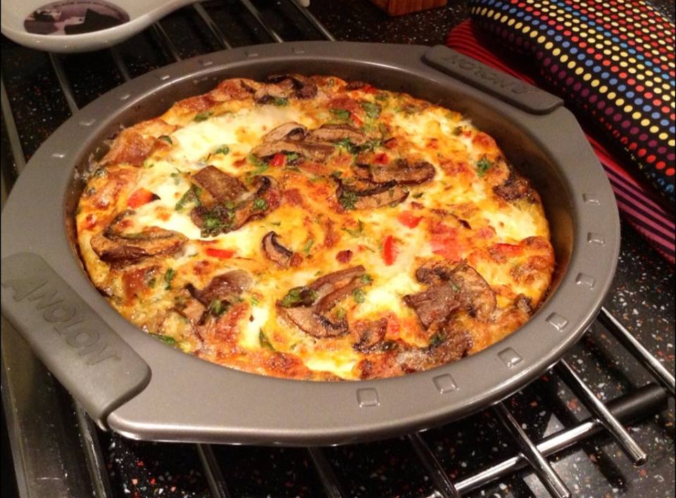 A frittata is an omelette of Italian origin that is thick, almost like a crustless quiche. It’s perfect for brunch, lunch or dinner. You can put almost anything in a frittata and it’s a great way to use up any leftovers. My favourite ingredients are mushrooms, onions, red peppers, cheese and parsley. These ingredients not only go very well together, they lend a beautiful vibrant colour to the dish!