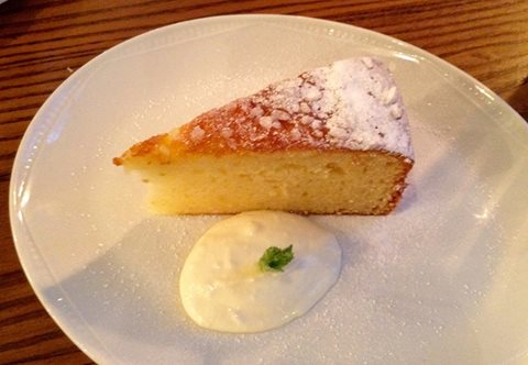 Dessert was a lemon drizzle cake, served with softly whipped cream. The cake was moist but dense with a real lemon flavour. The cream on the side was superb.