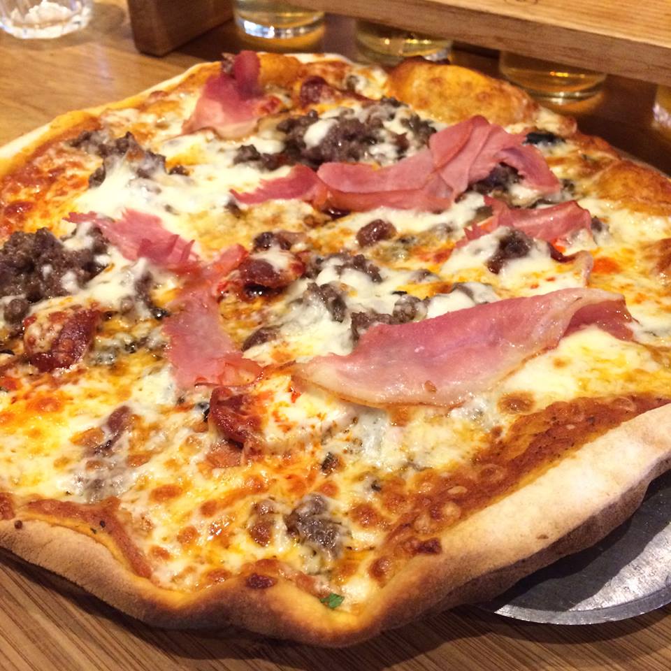 There were a variety of tempting pizza options to choose from. My son loves cheese so naturally he ordered The Four Cheese Special, a pizza with an optional tomato base topped with Rosary goat’s cheese, Dorset Red smoked cheese, Wookey Hole aged cheddar and local blue cheese. They were generous with the cheese!