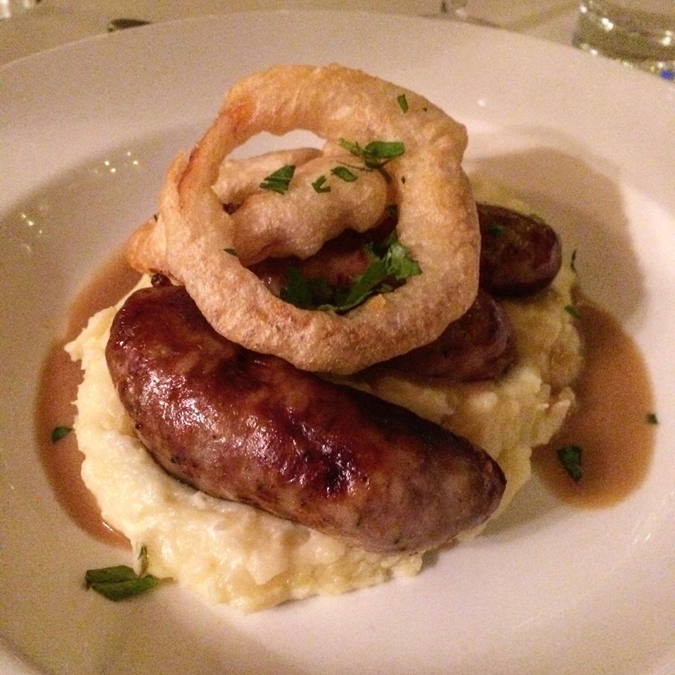 Service was impeccable and well-organised. The first traditional British dish was brought out: Bangers & Mash. Three of Burwash Manor’s award-winning pork sausages were placed on a bed of creamy mashed potatoes with onions rings on top for a final flourish. The sausages had the perfect balance of meat and fat so they were dense but not dry or greasy. We also enjoyed carrots and green beans with our meal. There was extra gravy on hand but some people tried The Foraging Fox’s beetroot ketchup with the sausages. I dipped my onions rings in the beetroot ketchup. I’m not a big beetroot fan so I wasn’t sure what to expect but I loved it. It wasn’t overly sweet and had a nice combination of beetroot, apple and spices. Very tasty!