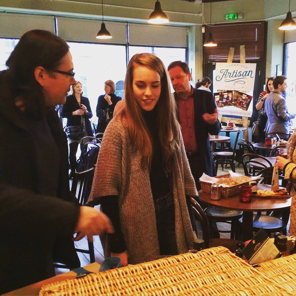 Throughout the launch, Amélise spoke passionately about the independent local products she supports. She answered questions about Cambridge Artisan’s services and showed people the brand new website, available to view on a laptop. Amélise is also involved in the company’s social media: Twitter, Facebook and Instagram.