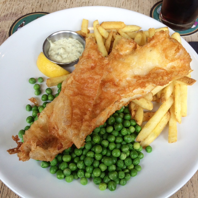 The Plough’s fish is delivered fresh every morning so Paulo and I both ordered the Beer Battered Fish and Chips: haddock fillet served with french fries, minted peas and their own tartar sauce. We enjoyed the haddock’s dense flaky flesh and the light and crispy batter. No mushy peas served… these were fresh garden peas that I much preferred.
