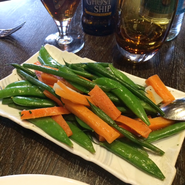 Our mains were served with a side order of perfectly cooked mixed vegetables (mangetout, green beans and carrots) with the right amount of bite to them.