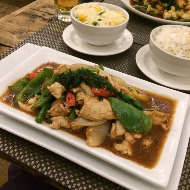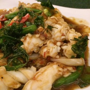 Paulo went for the squid gra pao, a basil and chilli stir fry with a spicy sauce where the squid was quickly stir fried so it didn’t become rubbery.