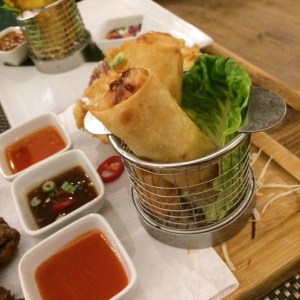 The sharing platter included hand-cut pork grilled in skewers, salt and pepper squid, Thai fish cakes and vegetable spring rolls… all of them delicious but the real stand out was the fresh squid encased in a crispy yet puffy batter. Sprinkled with salt, black pepper, spring onions and red chillies, this dish was particularly moreish!