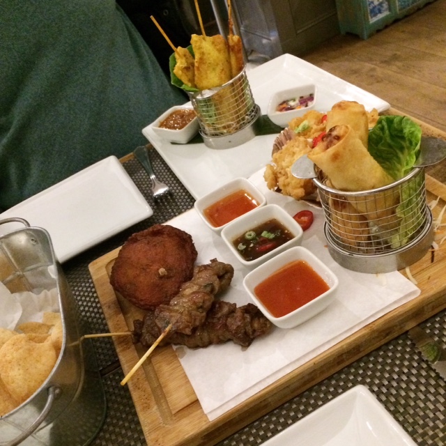 All of the mouth-watering descriptions of the dishes on the menu really stimulated our taste buds so we ordered the sharing platter as well as a portion of chicken satay (a must for Paulo). Everything was beautifully presented.