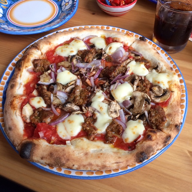 It’s the crust that makes Neapolitan pizza truly unique and this is where Pie’za Pizzeria excelled. The crust was thin and soft with good chew and plenty of flavour. (The crust isn’t meant to be thick or super thin like other pizzas). The pizza was cooked at a high temperature so the crust bubbled up and was charred in some spots (that doesn’t mean it was burnt). The edges of the crust formed that all important cornicione rim. Their pizza, true to Neapolitan tradition, had a wet centre… a hot, soggy area in the middle where the succulent toppings came together when the crust was cut into. This is why Neapolitan pizzas are served uncut, so this flavour aspect doesn’t get compromised. Some people might find fault in the molten area but this is a characteristic of authentic Napoletana pizza.