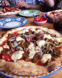 The boys (husband and son) both chose La Spie’za – Meat Lovers Dream pizza with tomato sauce, fior di latte mozzarella, ‘nduja (spicy, spreadable sausage), spicy soppressata salami and mild pepperoni. Some chilli peppers were served on the side for those craving an extra kick. The toppings on our pizzas were delicious; some locally sourced and others imported from Italy when unavailable in the region.