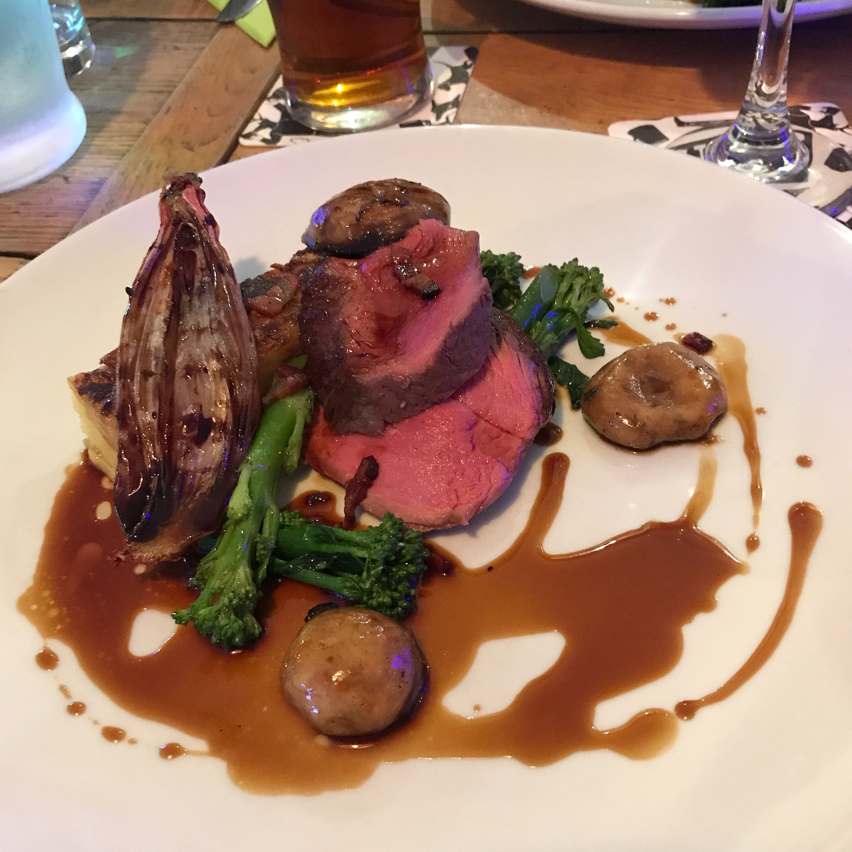 The veggie option, which needs to be booked in advance, consisted of rolled savoy cabbage, summer vegetables, button mushroom, caramelised shallot, dauphinoise potatoes and vegetarian gravy.