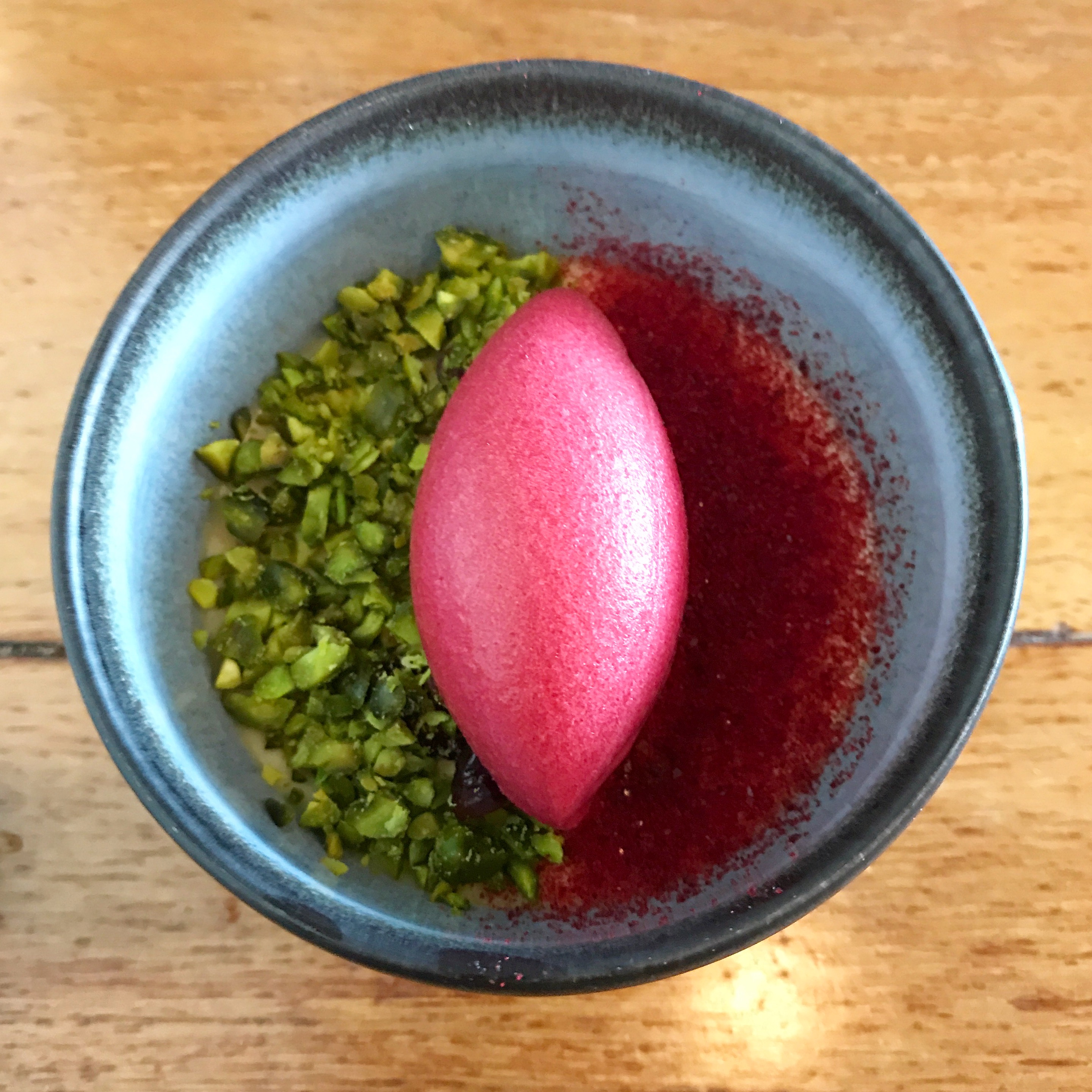 The best part of Ox’s menu is the element of surprise as the dishes are merely described by their ingredients. Paulo ordered the green tea, pistachio and cherry sorbet dessert and was presented with a rainbow bowl of meticulously arranged sections, topped with a perfect scoop of intensely flavourful cherry sorbet.