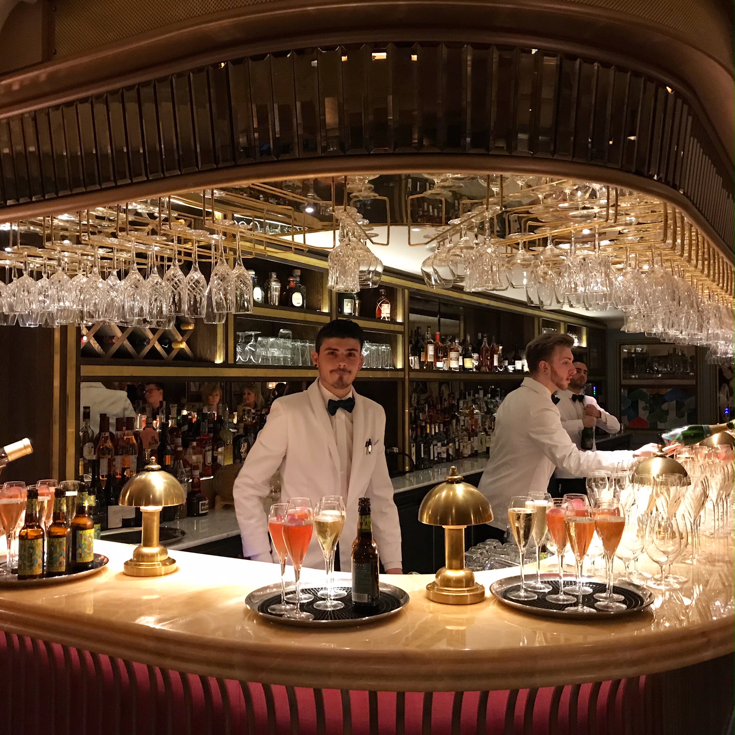The interior design is pure art deco opulence, featuring striking contemporary art, vibrant colours, polished marble floors, bronzed antiques, plush armchairs, buttery leather banquettes, soft lighting and a shimmering bar. The bartenders are clad in white jackets and black bow ties. There’s a coat check at the door. The whole building is the epitome of glamour!