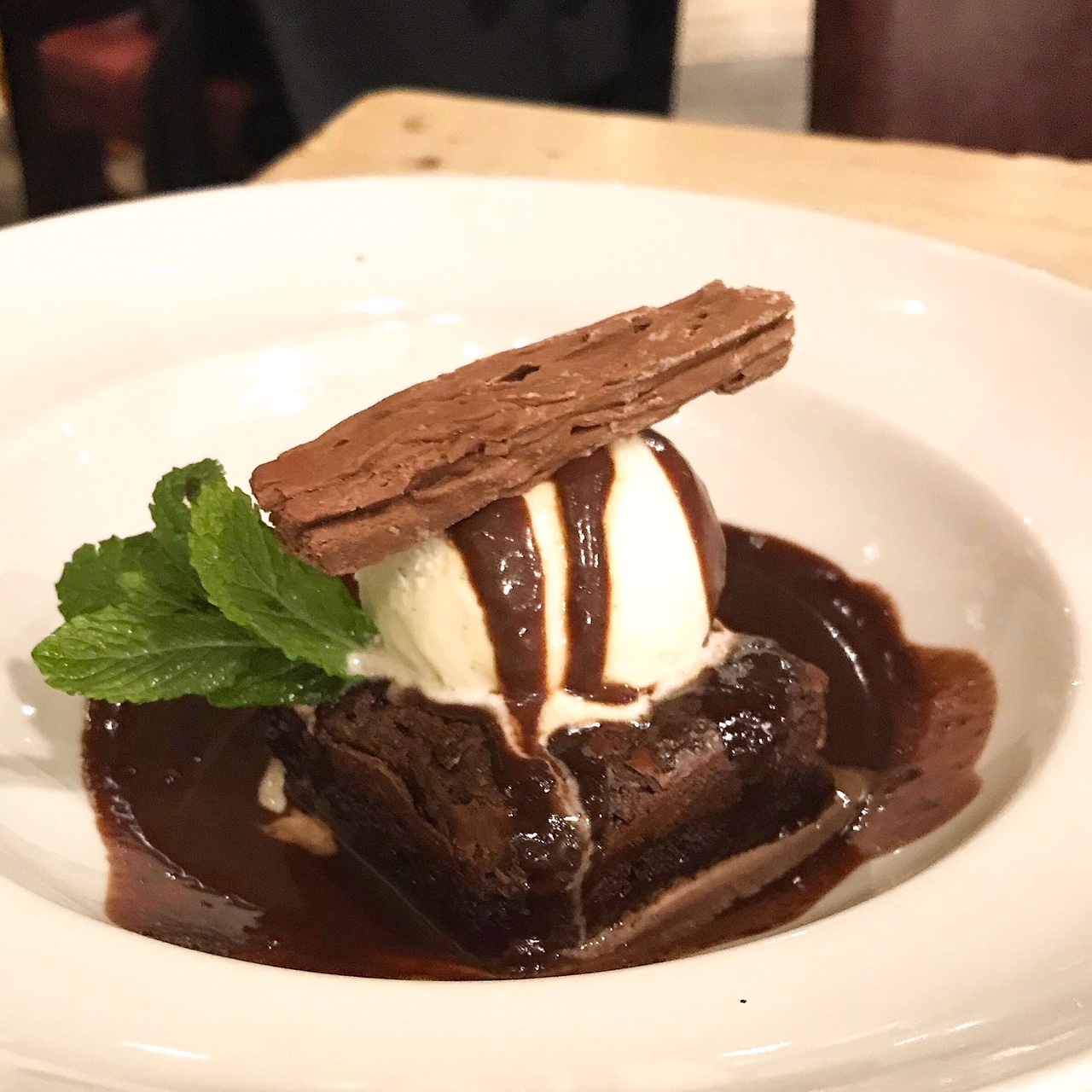 Our desserts were excellent. They are big portions and could easily be shared. Paulo had the chocolate brownie with warm chocolate sauce, vanilla ice cream and a chocolate flake. A rich and very delicious treat.
