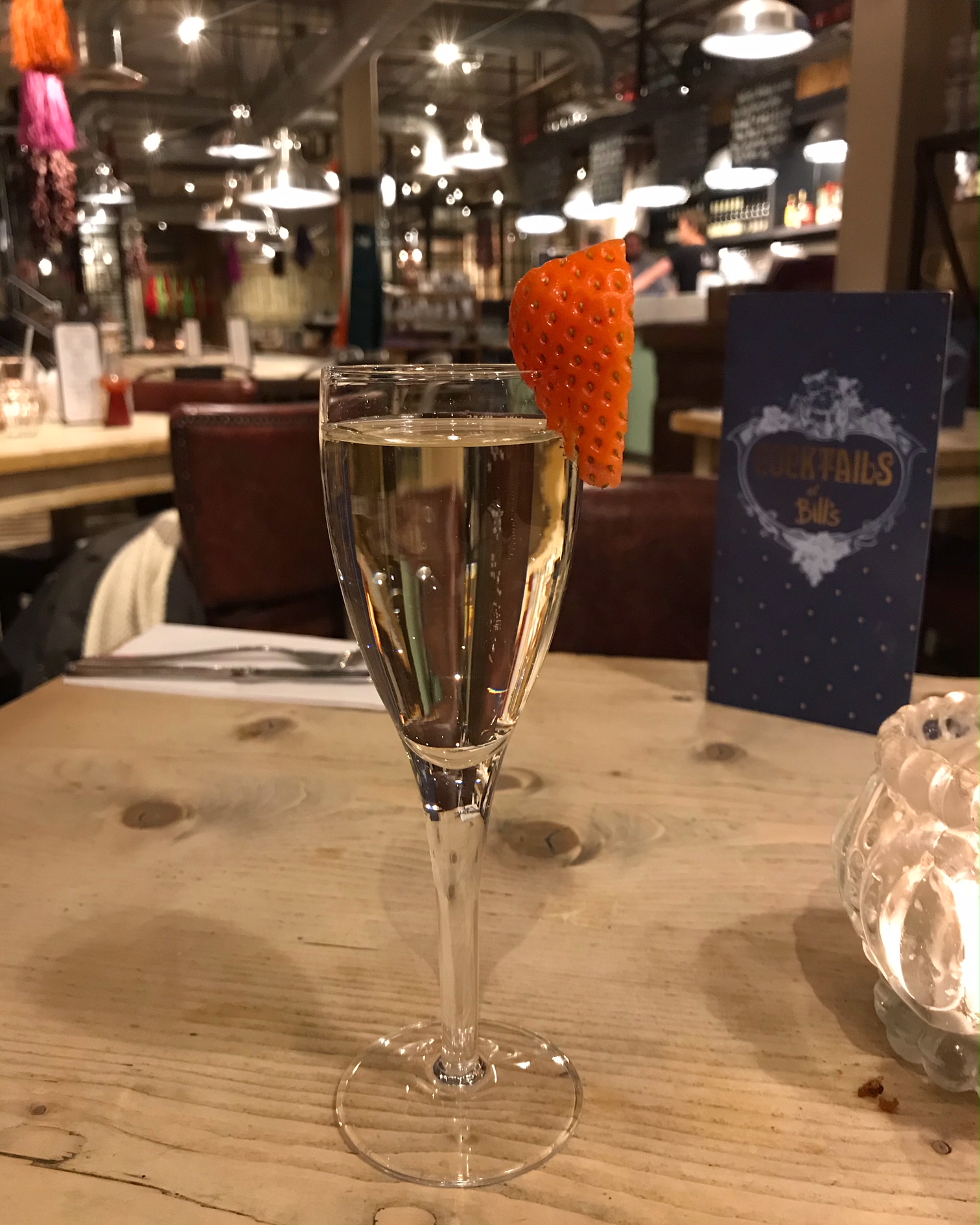 Whilst we perused the menu we enjoyed a glass of Prosecco, served with a strawberry for visual appeal. A good start.