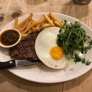 Paulo ordered steak, eggs and chips. The chargrilled minute steak, brushed with garlic butter, was perfectly cooked and he enjoyed it tremendously. Such a simple dish but easy to get wrong if the kitchen isn’t organised. It was served with chips, two fried eggs and the same Pico de Gallo salsa as our starter. Its flavours still weren’t bold enough but the salsa went well with the steak. The pea shoots were unnecessary, most likely added to the dish for presentation purposes. Paulo didn’t eat them.