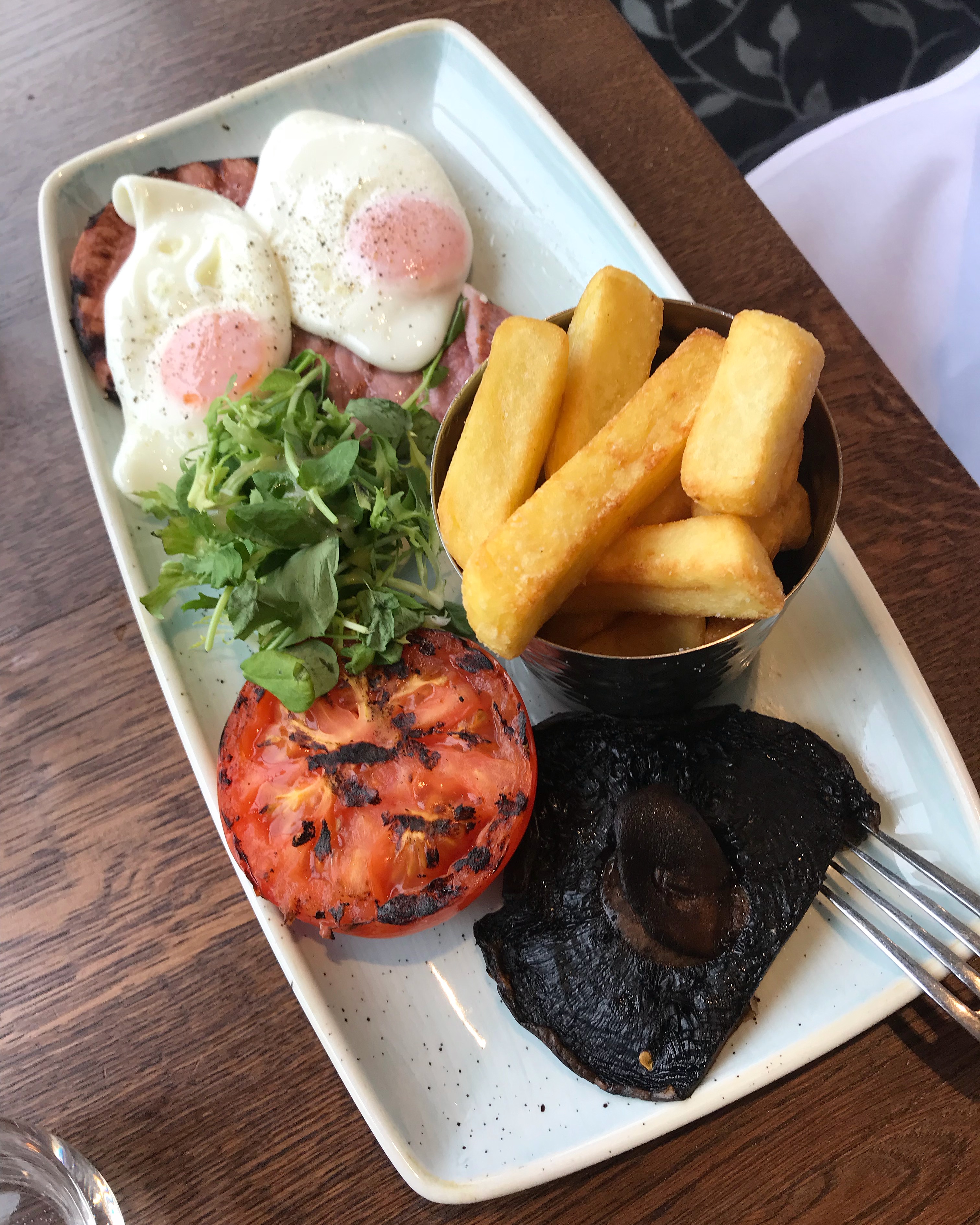 Paulo chose the special for his main course: gammon, eggs and chips, served with roasted tomato, portobello mushroom and watercress. The dish was cooked to perfection and nicely presented – a real winner that should be a permanent fixture on the menu.