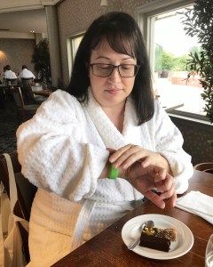 It was time for lunch so we headed to a dining room in the hotel that was separate from the restaurant, so we could lounge around in our robes and choose from the nicely laid out buffet. There’s something wonderfully relaxing about having lunch in a bathrobe and slippers!