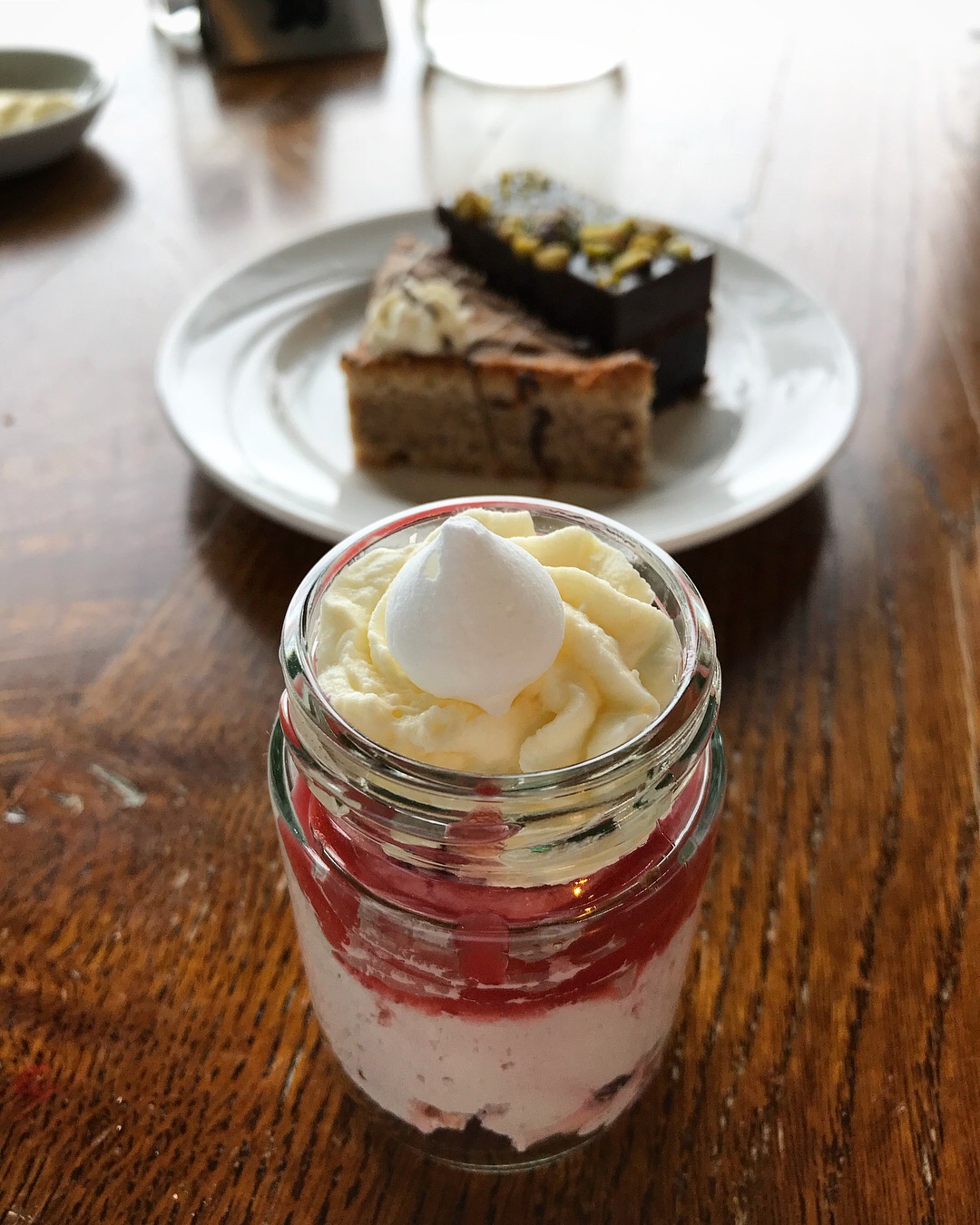 The desserts were too tempting to pass up. I sacrificed the cheese station in order to have three puddings (chocolate & pistachio cake, eton mess pot and banana cake).