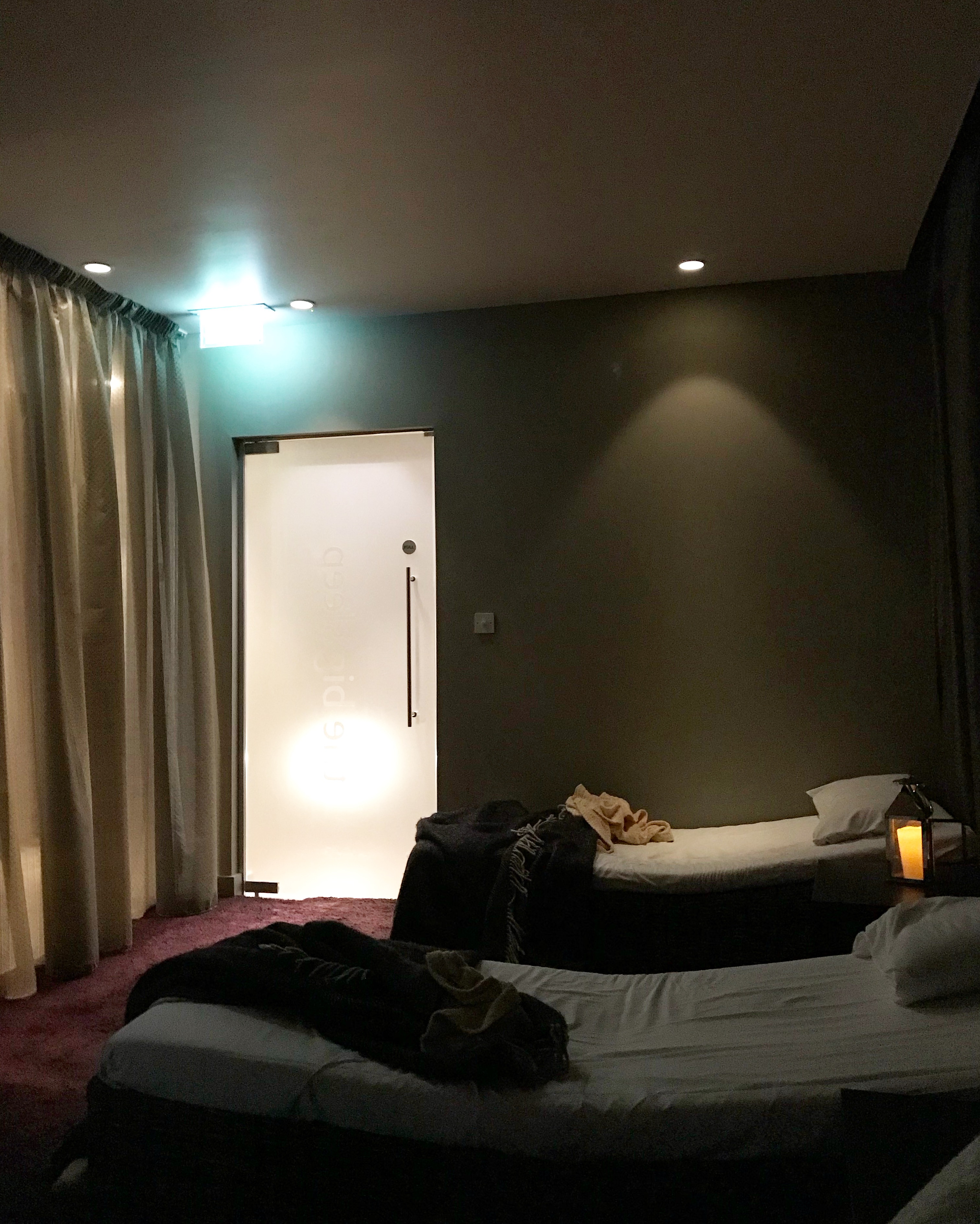 We scheduled some relaxation time before dinner and headed to the Big Sleep, a dark room with relaxing music and ergonomic loungers by the fireplace.