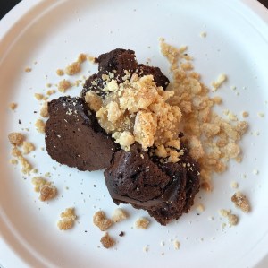 Both desserts were delightful. The pressed chocolate cake with salted caramel wasn’t overly sweet and the milk crumbs added a tasty texture.
