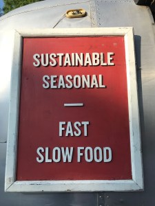 A Provenance dinner at The Cambridge Distillery Showroom is an experience between street food and a proper restaurant. After being seated at a reserved table and perusing the menu, food orders are placed and paid at the trailer hatch but there is also table service. Drinks are ordered and billed separately through The Cambridge Distillery Showroom. Provenance staff bring dishes to the tables. Food is served in good quality paper plates and proper cutlery is provided.