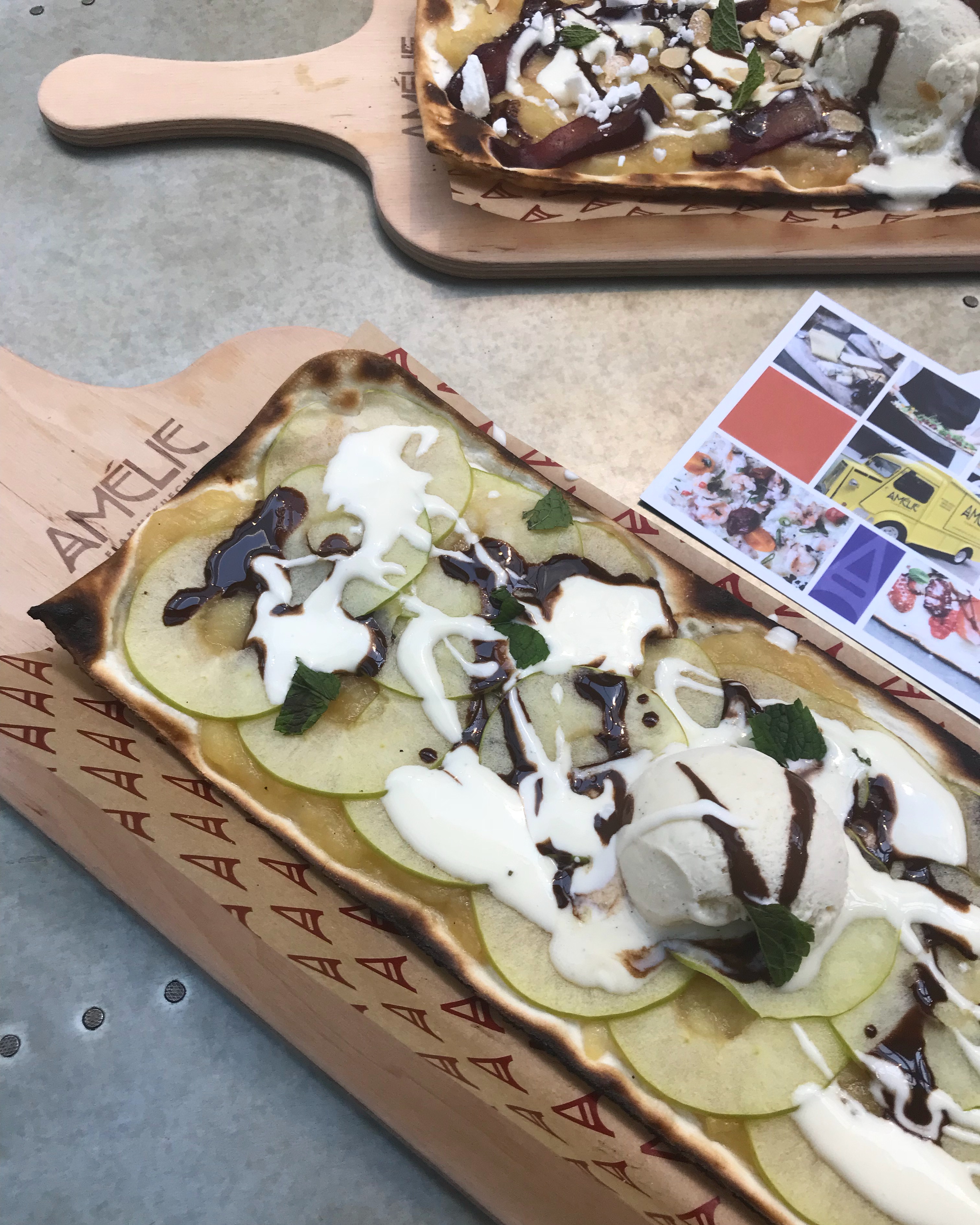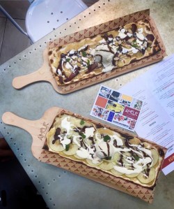 For vegans or those who prefer a rich tomato base to substitute the crème fraîche, Amélie can adapt the Flammekueche into a “flammpizz”.