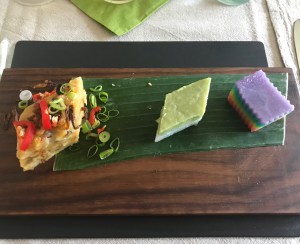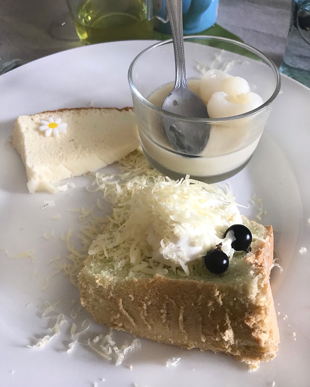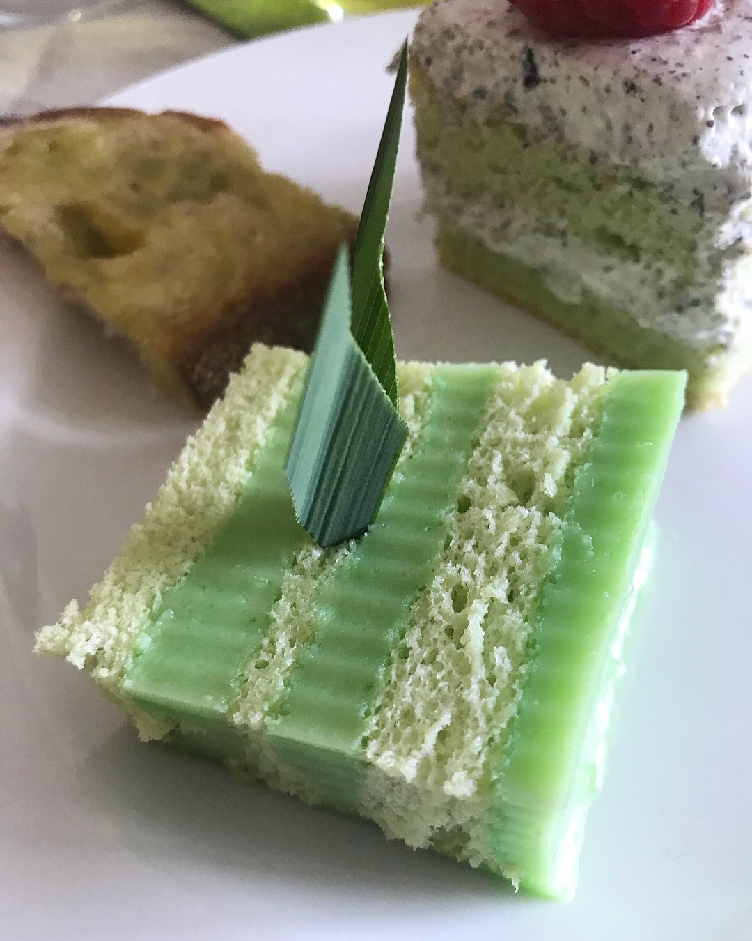The Pandan course featured kaya – a coconut jam infused with pandan – on toasted sourdough. Pandan layer cake (layered with pandan custard jelly) and pandan black sesame chiffon cake rounded out the tasty trio.