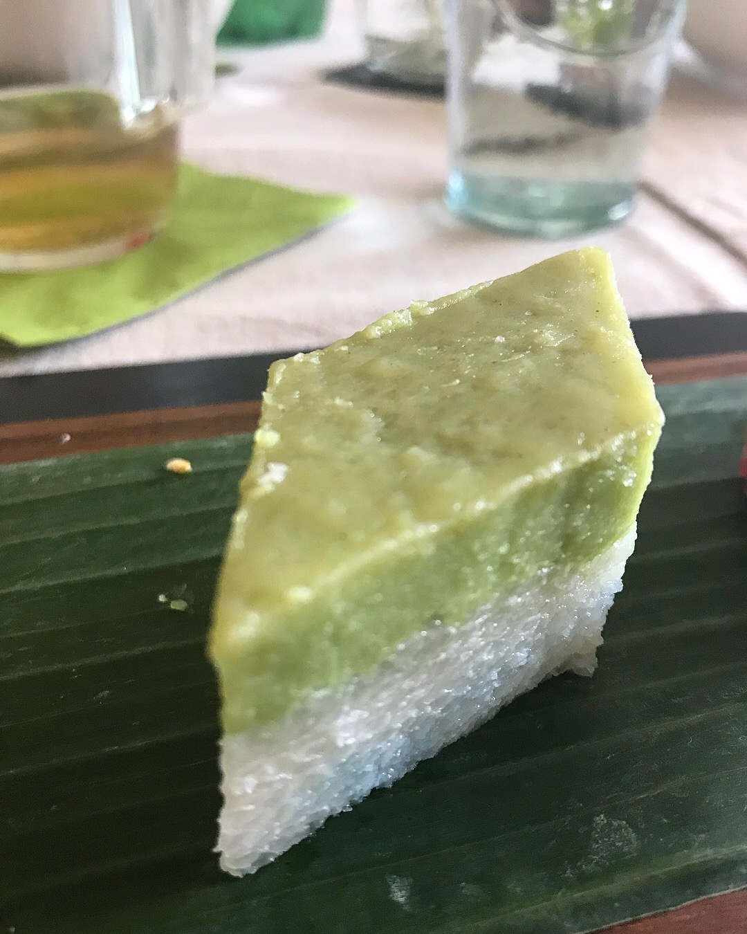 Then it was over to kuih seri muka, featuring two layers with glutinous rice in coconut milk at the bottom (salty) and pandan custard at the top (sweet).