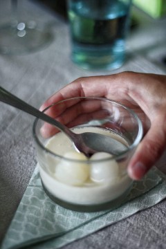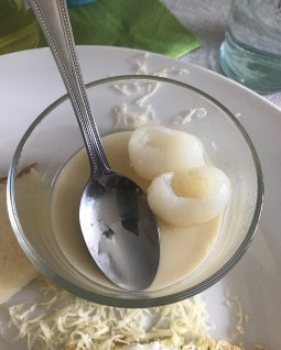 The finale consisted of longan tofu, a recipe Jin’s mum has been making for many years for visitors during Chinese New Year. This sweet tofu, made with soy milk, set with agar-agar and mixed with longan fruits and longan syrup, was an acquired taste but I love the fact that Jin included something so special to him.