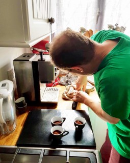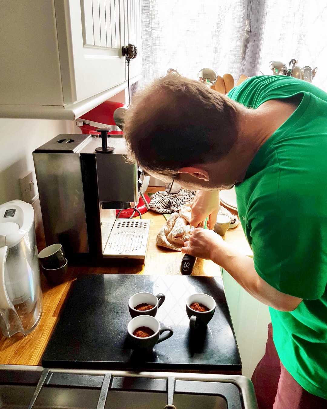 Espresso served at the end (Gatare Rwanda, single origin) was sourced from The Coffee Officina, a small batch coffee roastery based in Essex. Aidan – helper, waiter, mocktail pourer and crafter of the lovely serving boards – also knows how to make good coffee, complete with latte art. The coffee was served with one final treat – peanut cookies made by Jin from scratch.