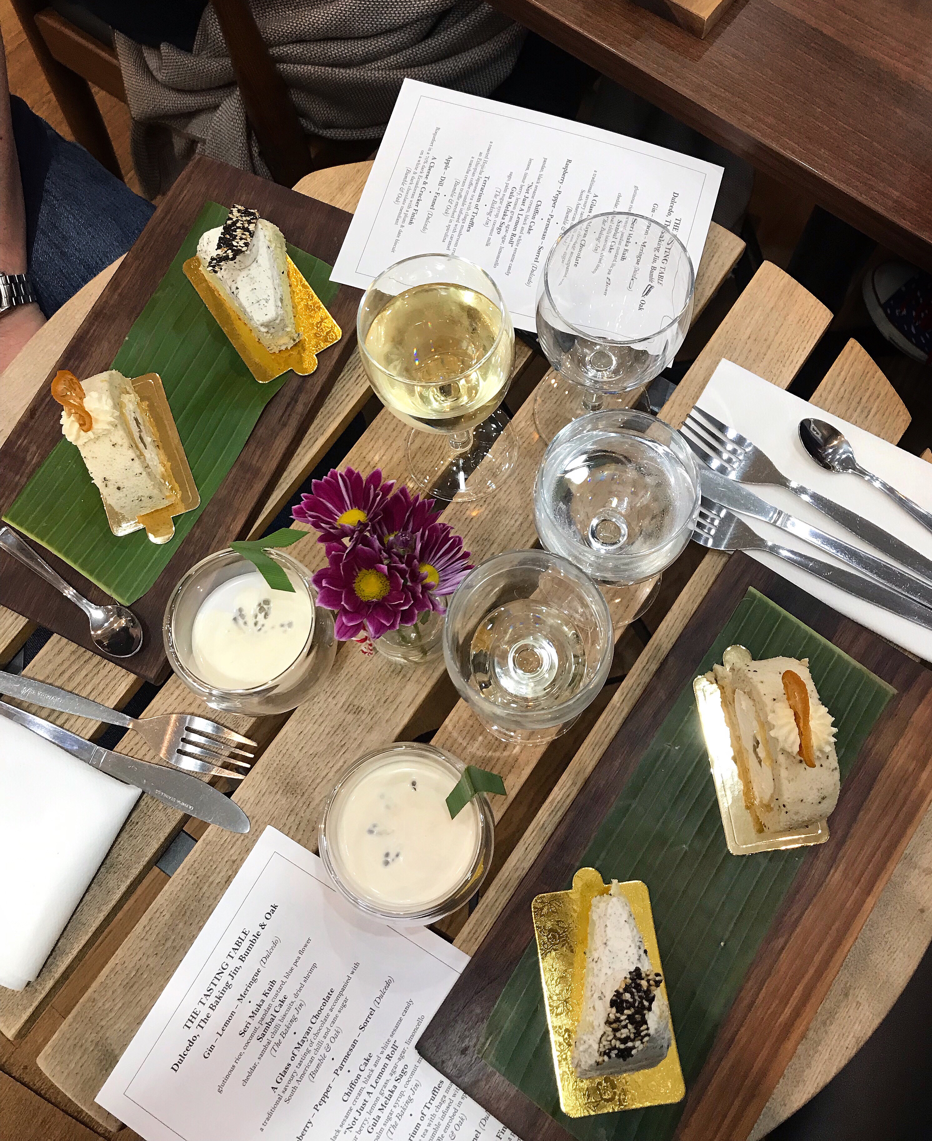 The three of them concentrated on designing and developing the 8-course menu – a sweet (mostly) and savoury parade of innovative dishes, fusion bakes, high end patisserie and artisan chocolate. I took care of all the marketing and admin stuff, such as the event description, photos and ticket sales. Riadh came up with the name The Tasting Table.