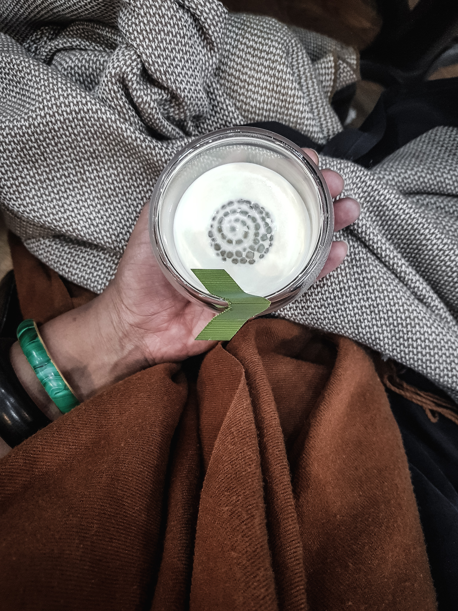 Riadh, a trained chocolatier and rare tea specialist with a background in Nutrition, Botany and Herbal Pharmacy, focused her creations on chocolate. A Glass of Mayan Chocolate was a nod to the Mayans, believed to be the first to discover cocoa. They prepared chocolate strictly for drinking and combined it with spices. This traditional savoury tasting of chocolate in a glass (with a sliver of real vanilla) was accompanied by South American chilli (a mixture of ancho, chipotle and a very smoky tomato pepper), cane sugar and yellow maca. It was fun to try the different accompaniments and sip the bitter chocolate.
