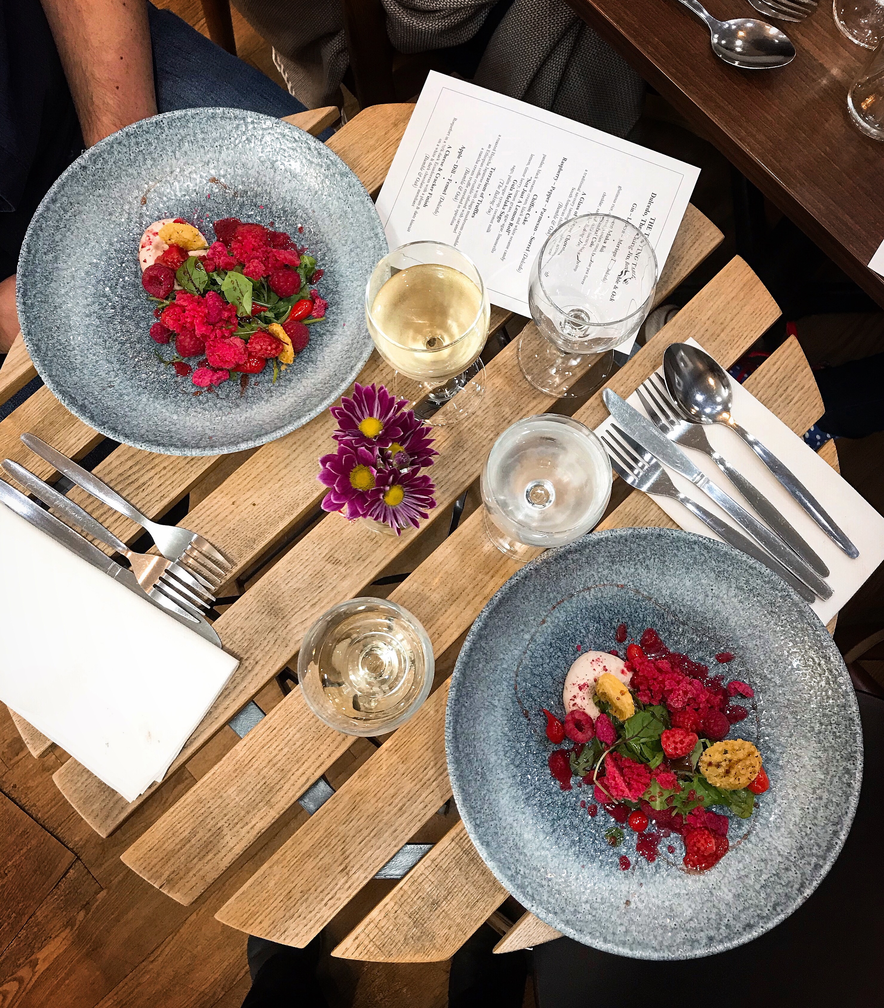 Andrew, an accomplished pastry chef with previous experience at distinguished Cambridge colleges Clare and King’s, kicked off the menu with a gin, lemon and meringue cocktail that was part drink / part dessert (we ate the meringue with a spoon).