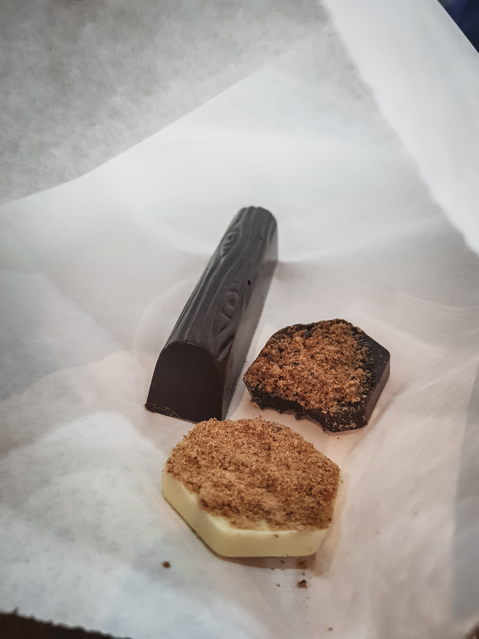 - an Ethiopian coffee and carefully layered caramel inside a 72% shell (the coffee was from The Brew Project in Cambridge).