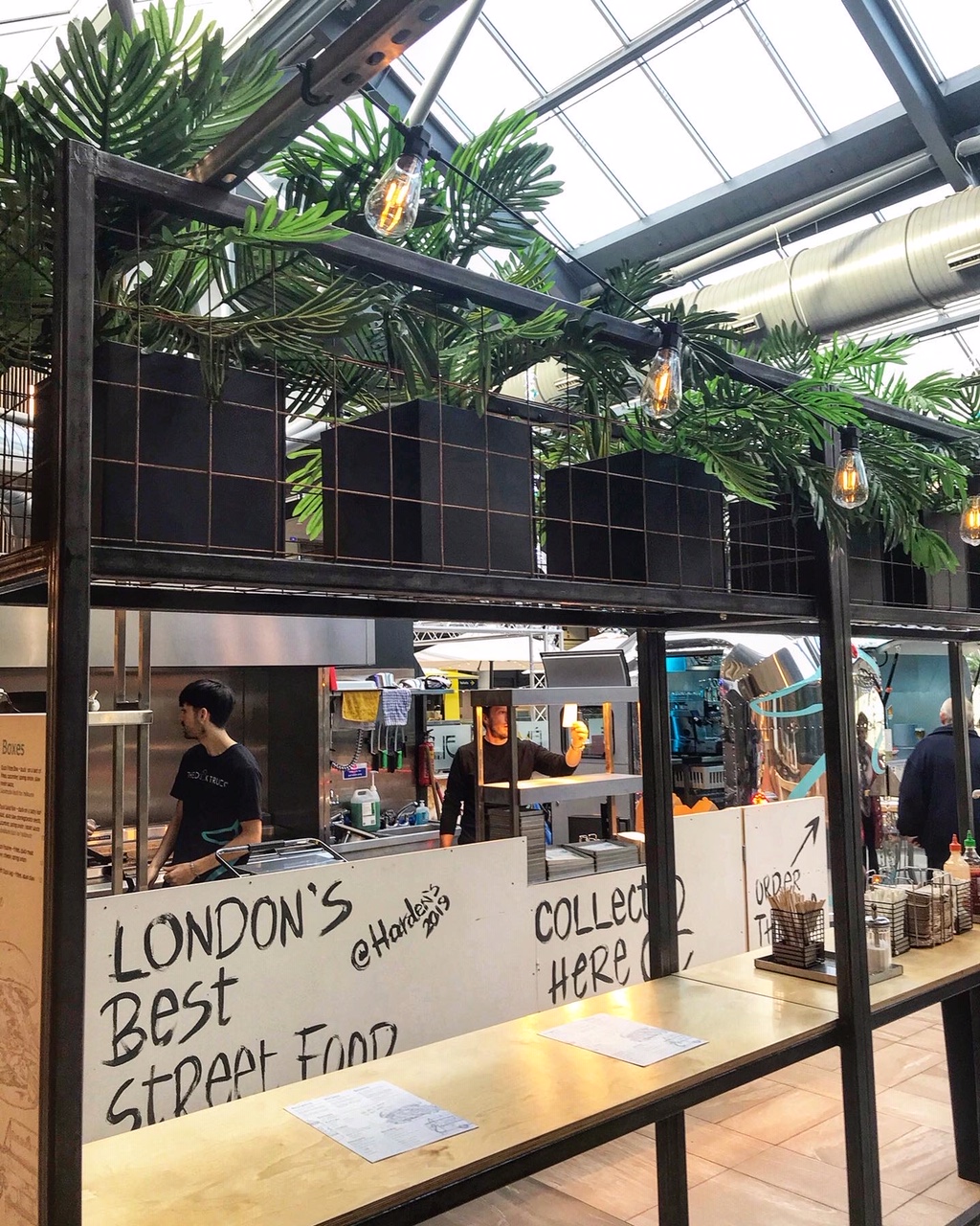 The Cambridge location, on the first floor of a shopping centre, required some tweaks to the mobile street food concept. The Duck Truck’s signature Airstream trailer was retained, but as a small, stationary version where orders are placed at the hatch, drinks are prepared and coffee is made in their La Marzocco machine.