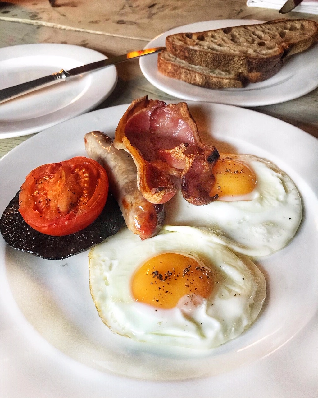 Peter and I both opted for the Gunton fried breakfast, featuring Erpingham House Farm eggs, deliciously smoky bacon, sausage, tomato and field mushroom.