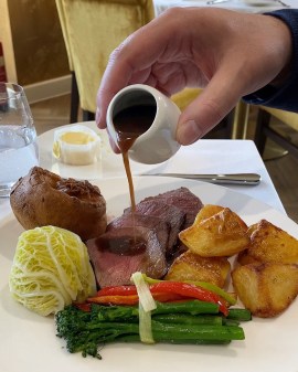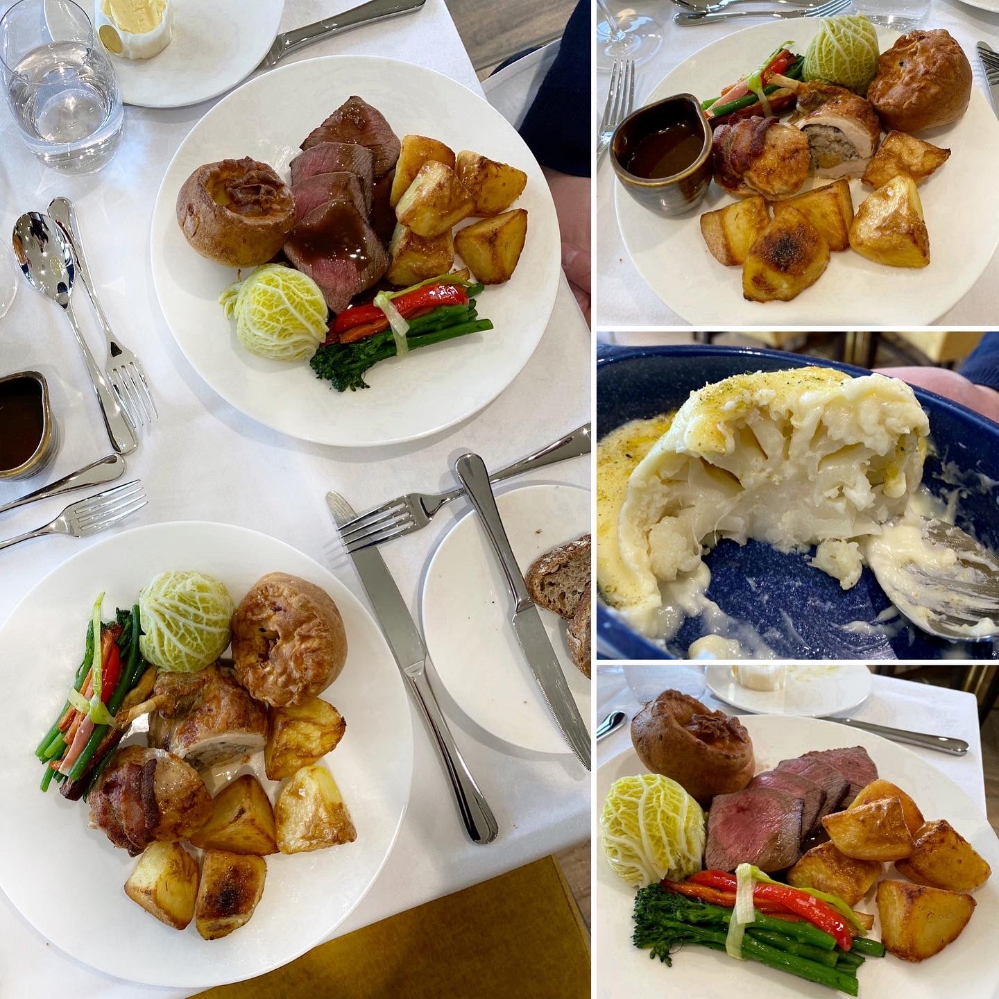 All dishes were served with roast potatoes, natural gravy, savoy cabbage, vegetable bundle, Yorkshire pudding, mustard and horseradish sauce. The cauliflower cheese was a surprise! I was glad to see it as this classic accompaniment is an integral part of a Sunday Roast.