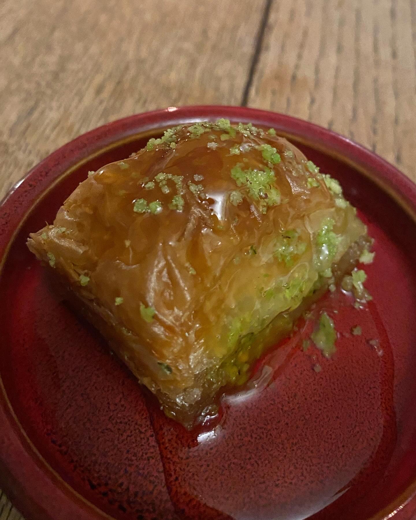 Moussaka – lamb ragu, aubergine and potatoes in a herb and tomato sauce, topped with bechamel and served with a fresh Greek salad and garlic pitta.