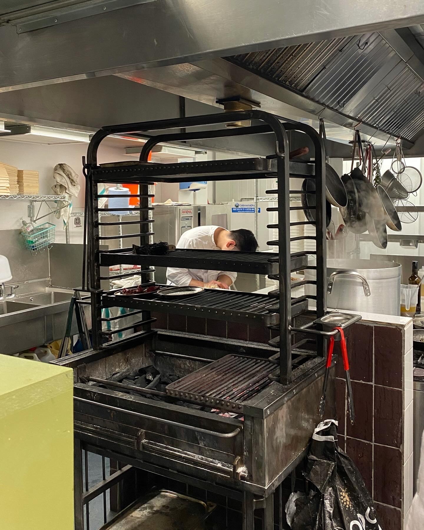 It’s a sleek, contemporary space with large windows, beautiful artwork and cosy seating areas. The bar is the central hub where guests can watch the chef at work and admire the fresh loaves, oysters on ice and wine bottles on display. The basement kitchen boasts an impressive custom-made grill.