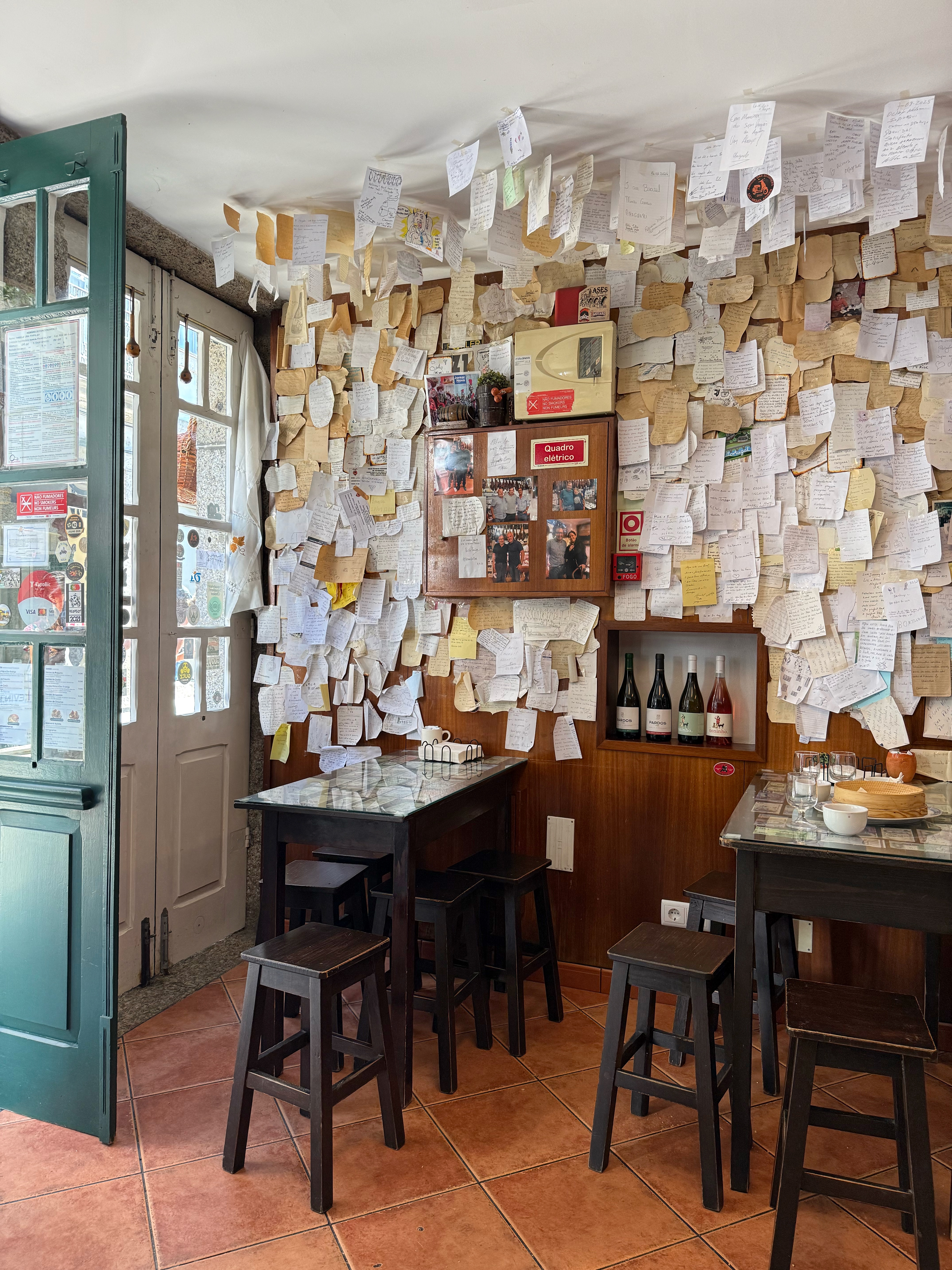 Taberna Don Rodrigo, right in the historic centre of Amarante in northern Portugal’s Porto District, serves dry-cured ham, cheese, bread, wine and other regional products. With customer handwritten notes on the walls and global currencies tucked under glass on their wooden tables, this small traditional tavern has bags of charm.