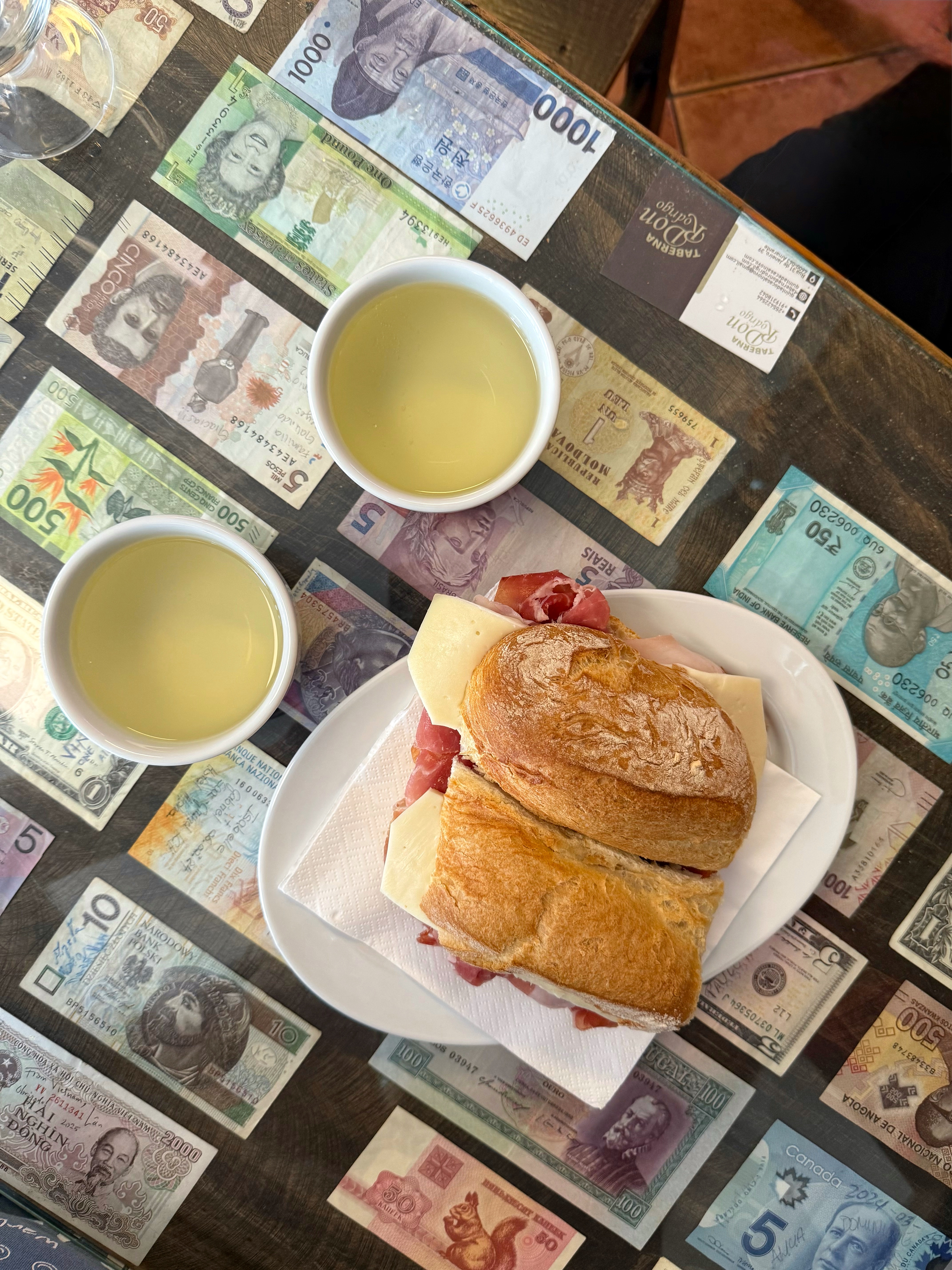 We paired the sandwich with their O Toninho slightly effervescent white vinho verde, served in a traditional cup. Grape varieties: Azal and Arinto.